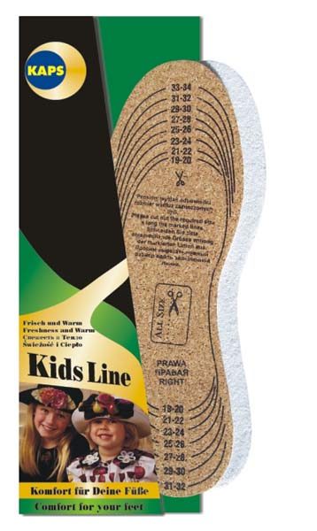 Kork-Frottee-Einlegesohlen für Kinder bestehen aus Frottee und Naturkork, wobei ersteres angenehm für die Füße ist und Kork eine isolierende Schicht darstellt.