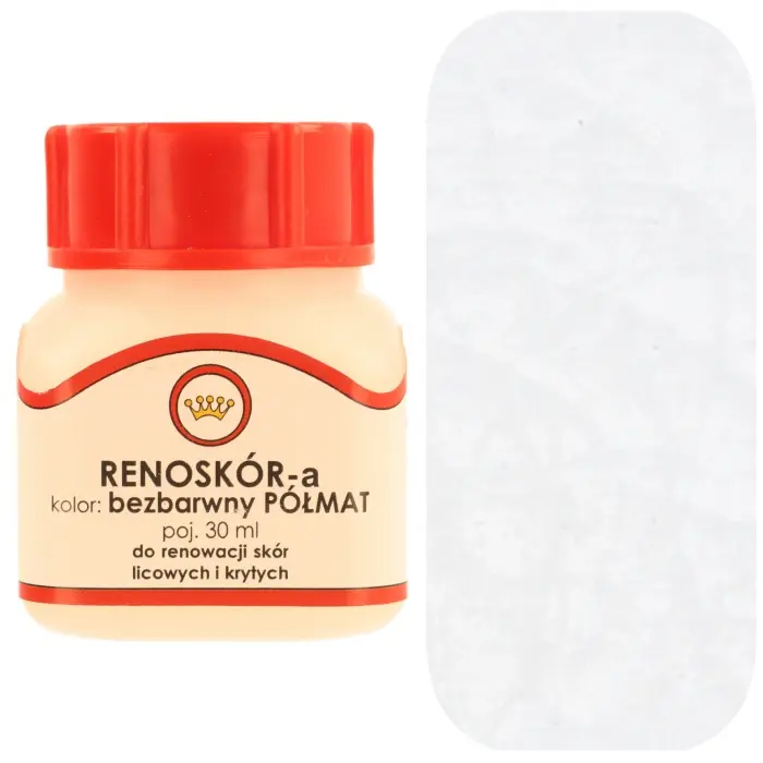 Renoskór - Farbe / Lack - ist eine professionelle Farbe, die für Lederrestaurierungs- und Veredelungsarbeiten in der Lederindustrie bestimmt ist. Sie können damit Schuhe, Jacken, Mäntel, Möbel, Handtaschen, Gürtel und andere Lederwaren restaurieren. Es ergibt halbmatte Beschichtungen, die die natürliche Textur und das weiche Gefühl der Haut bewahren.